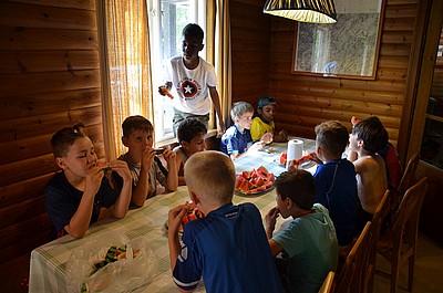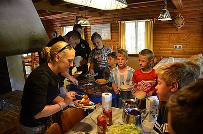 Lägret blev en stor succé, men utan frivilliga att hjälpa till hade det inte blivit något av! Julians föräldrar Milan och Mirela lagade en klassisk Balkan "rostilj" med cevape och tillbehör till lunch på lördagen, medan Adams mamma Jenka lagade middagen som bestod av en populär klassiker, pasta Bolognese. Barnen åt tills det knakade i remmarna och Benjamin Kapos pappa Edin bjöd alla på saftig vattenmelon. Lördagen avslutades med en myskväll i form av en frågetävling mellan lag Göran och lag Fredrik. Till detta serverades chips, popcorn och pretzels. Som mellanmål fick killarna i sig massor av frukt och söndagsfrukosten bestod av cornflakes, fil och mackor.
