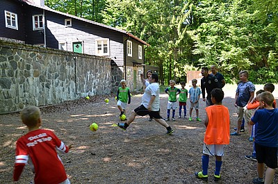 Två dagar av lek, fotboll, tävlingar, sol och värme, team building, god mat och äventyr fick våra spelare uppleva. Vi kunde inte ha önskat oss bättre väder och med tanke på att det för många av killarna var första gången de sov borta gick lägret fantastiskt bra. Vi ledare var beredda på att det skulle bli svårt för några barn att komma till ro på kvällen, men efter lite stimmande somnade alla och vaknade med gott om energi för söndagens äventyr. Bland annat hann vi med en tur till Ringsjön där några av barnen doppade fötterna.